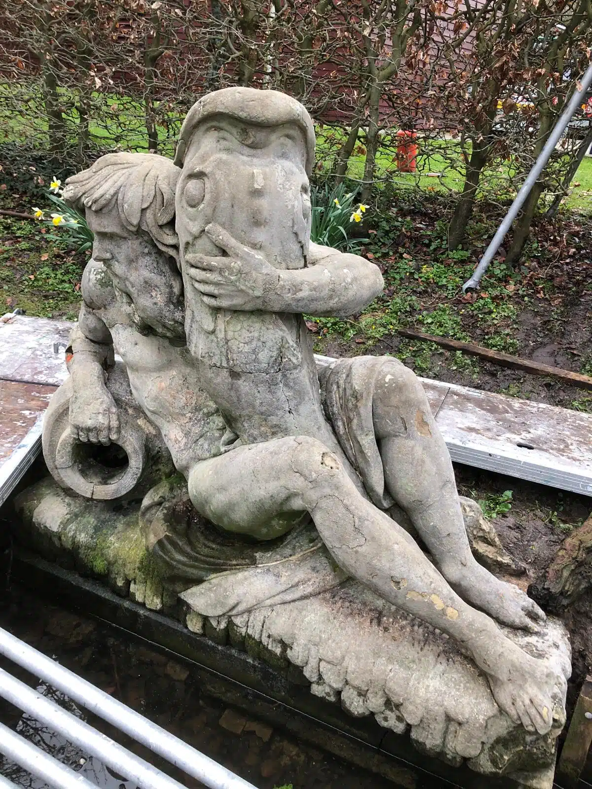 Namens de Gemeente Katwijk heeft cultuur-ambtenaar Rianne van Hilten ons geadviseerd om een register van de beelden aan te leggen. Daarmee kunnen we dan een subsidie aanvragen om een deskundig onderzoek uit te laten voeren. Dat register is nu compleet. Er is contact gelegd met een restauratie deskundige, die met ons wil samenwerken. Er is een begin gemaakt met de noodzakelijke werkzaamheden aan het beeld Rhenus Pater.