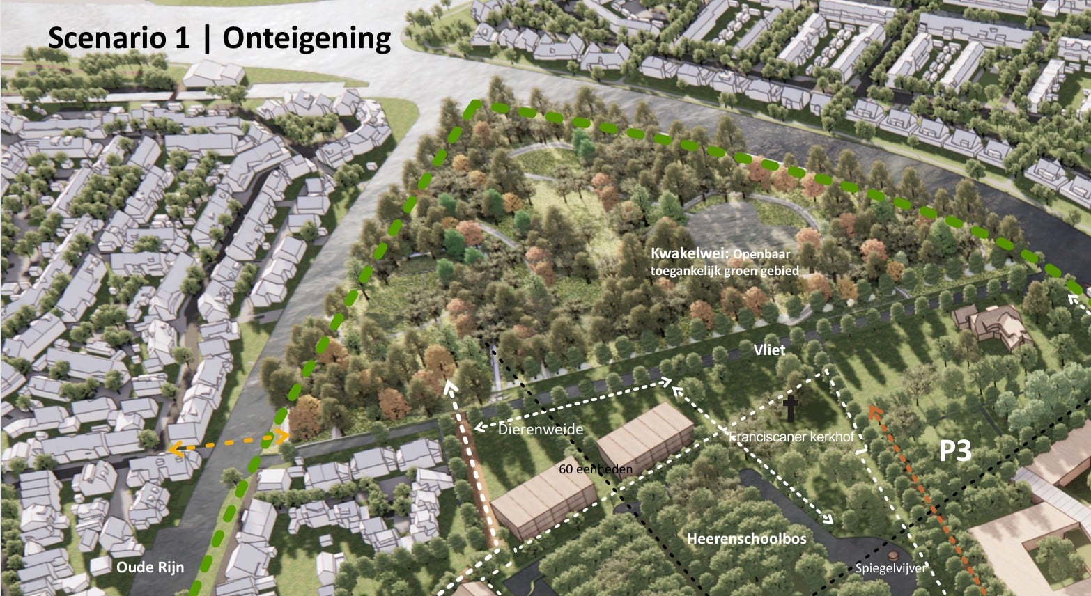 De naakte waarheid over het versteningsvoorstel voor de Kwakelwei. Dit is hoe de impact van drie woontorens op de oppervlakte van de Kwakelwei er in werkelijkheid uit ziet. Je houdt daarbij straks drie plantsoentjes over, er komt een brug over de Oude Rijn naar het Veereinde, er komen 70 koopappartementen voor het hogere segment, de verkeersdruk op de Overrijn neemt aanzienlijk toe en van zorgwoningen is in de uitgewerkte voorstellen, die VRP bij de gemeenteraad heeft ingediend, geen sprake.